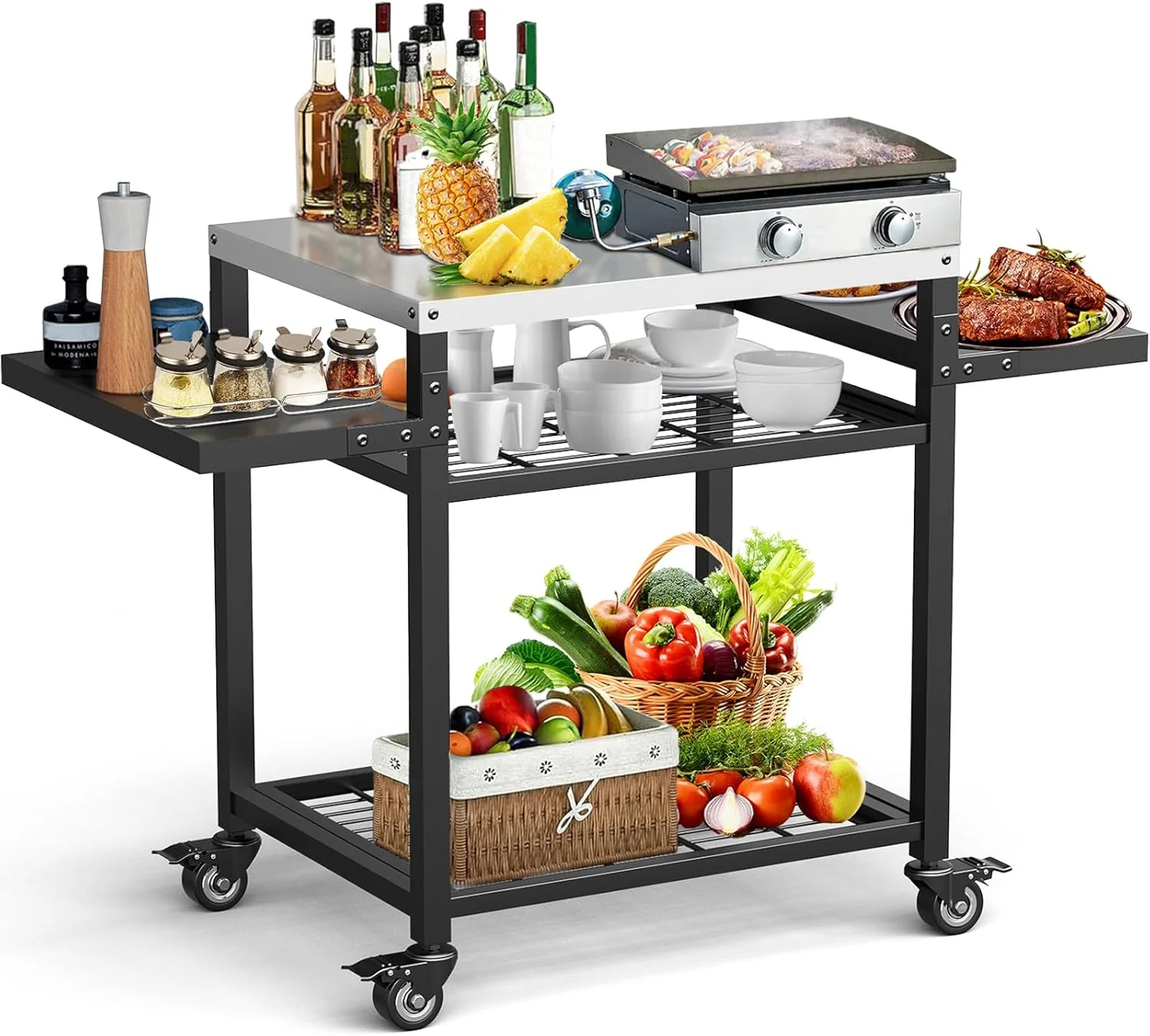 Outdoor Prep Cart Dining Table for Pizza Oven, Patio Grilling, and Backyard BBQ
