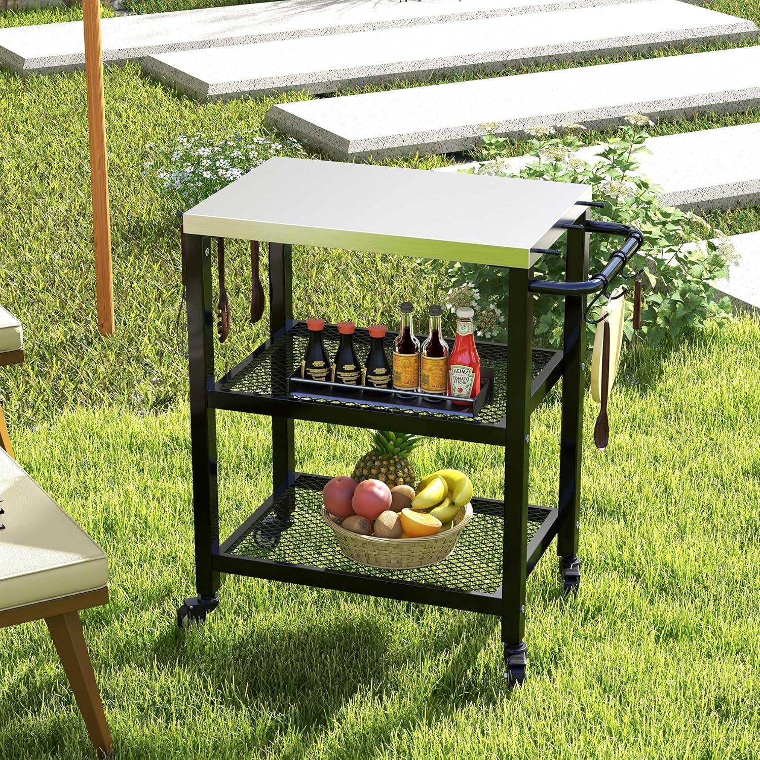 Adjustable 3-Shelf Indoor & Outdoor Grill Table | Portable Work Table with Stainless Steel Tabletop