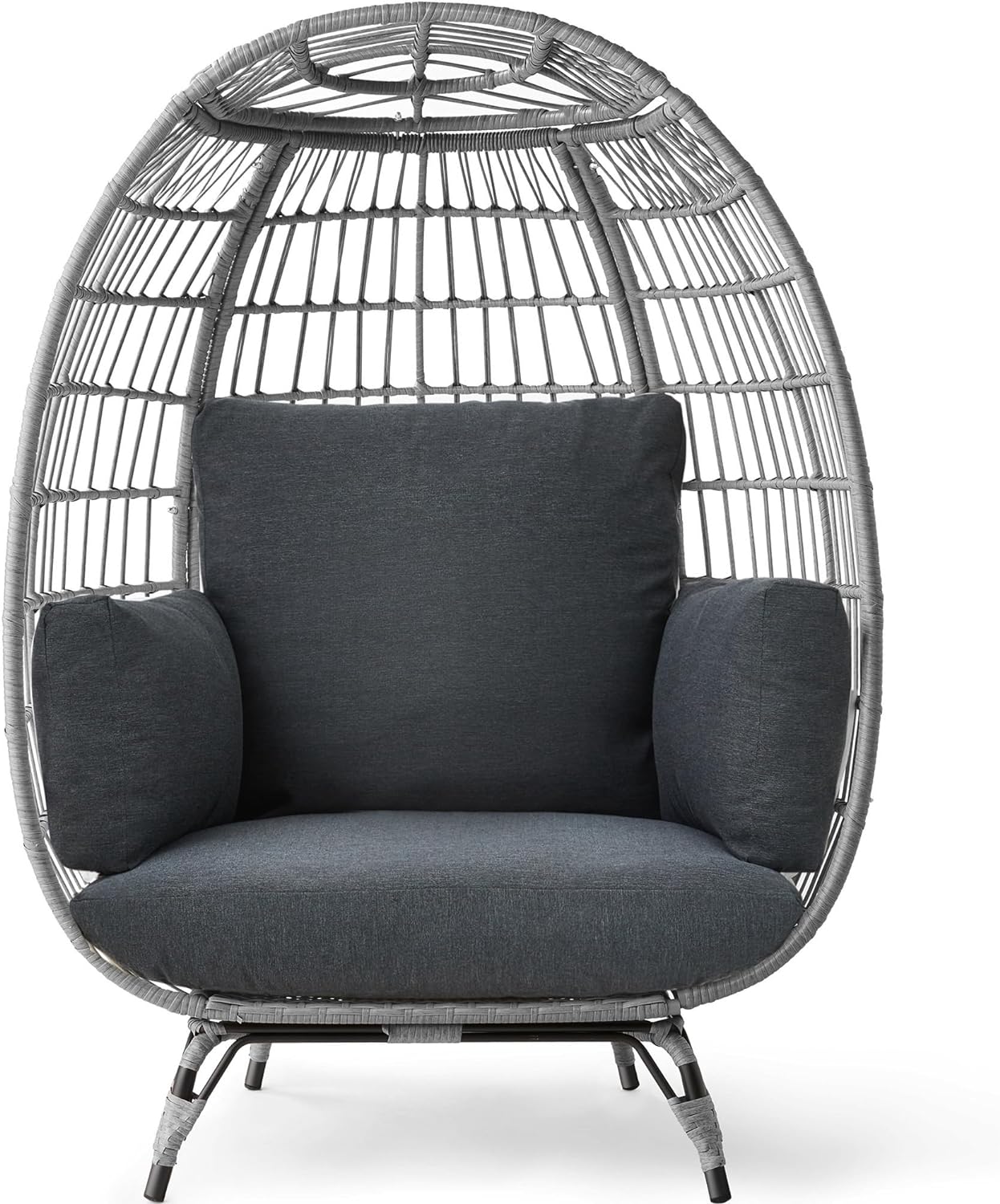 Best Choice Products Wicker Egg Chair, Oversized Indoor Outdoor Lounger for Patio, Backyard, Living Room w/ 4 Cushions, Steel Frame, 440lb Capacity - Ivory