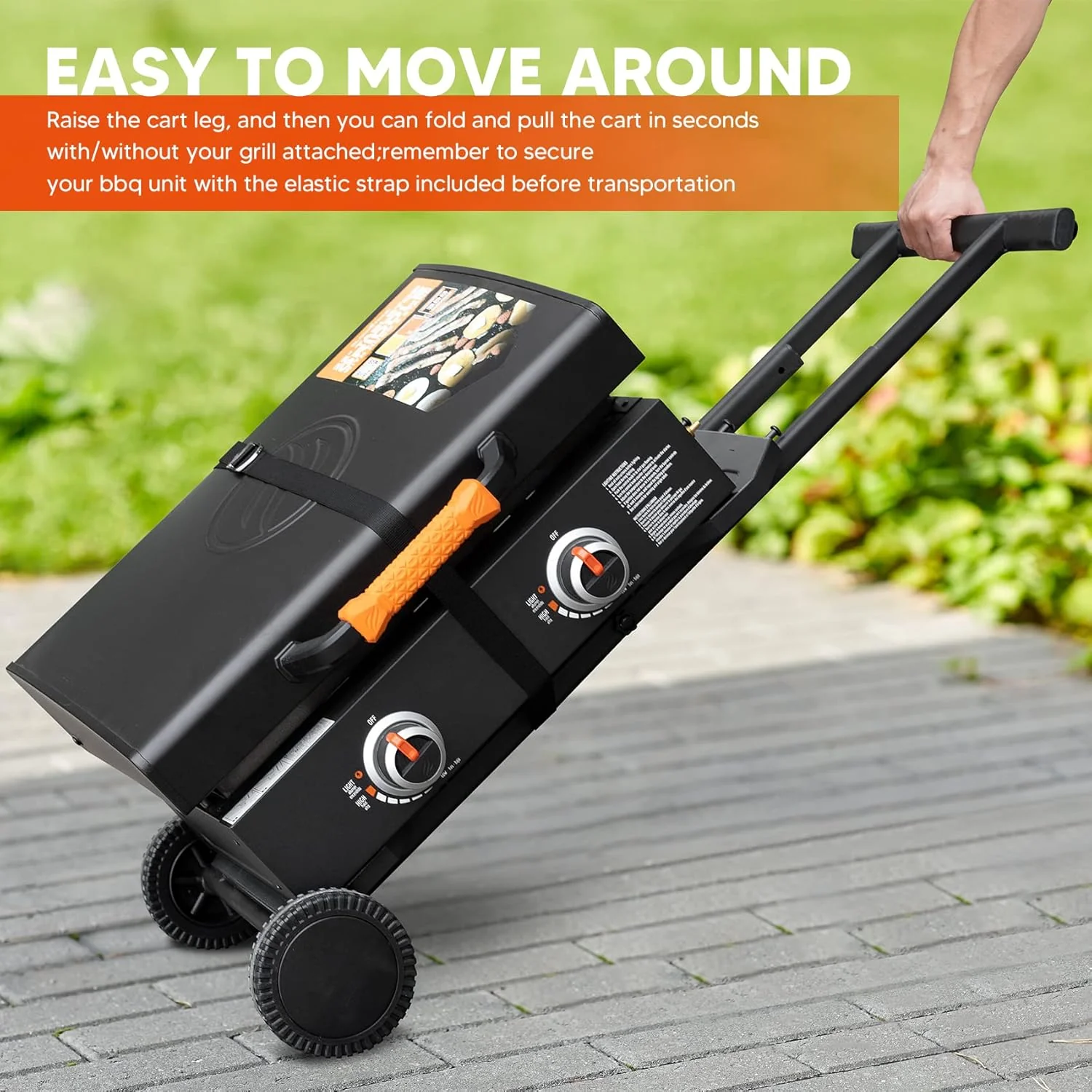 Sturdy wheels make it easy to move with your grill attached.