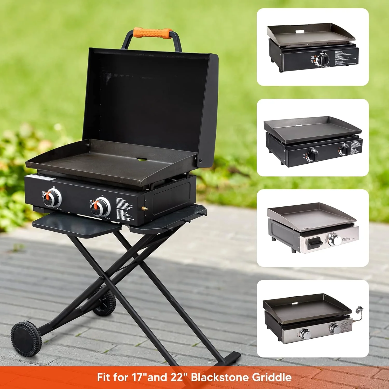 "Portable Griddle Stand for Blackstone Griddle 22 Inch & 17 Inch, Outdoor Foldable Grill Cart with Wheel and Shelf"