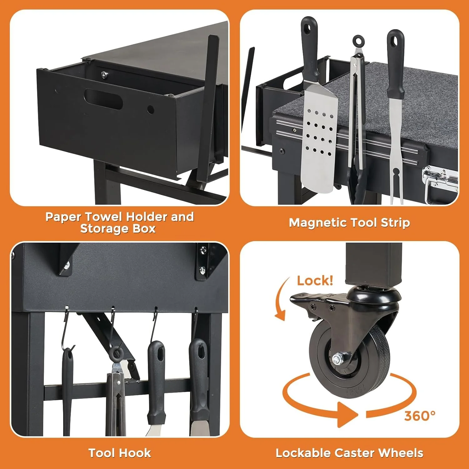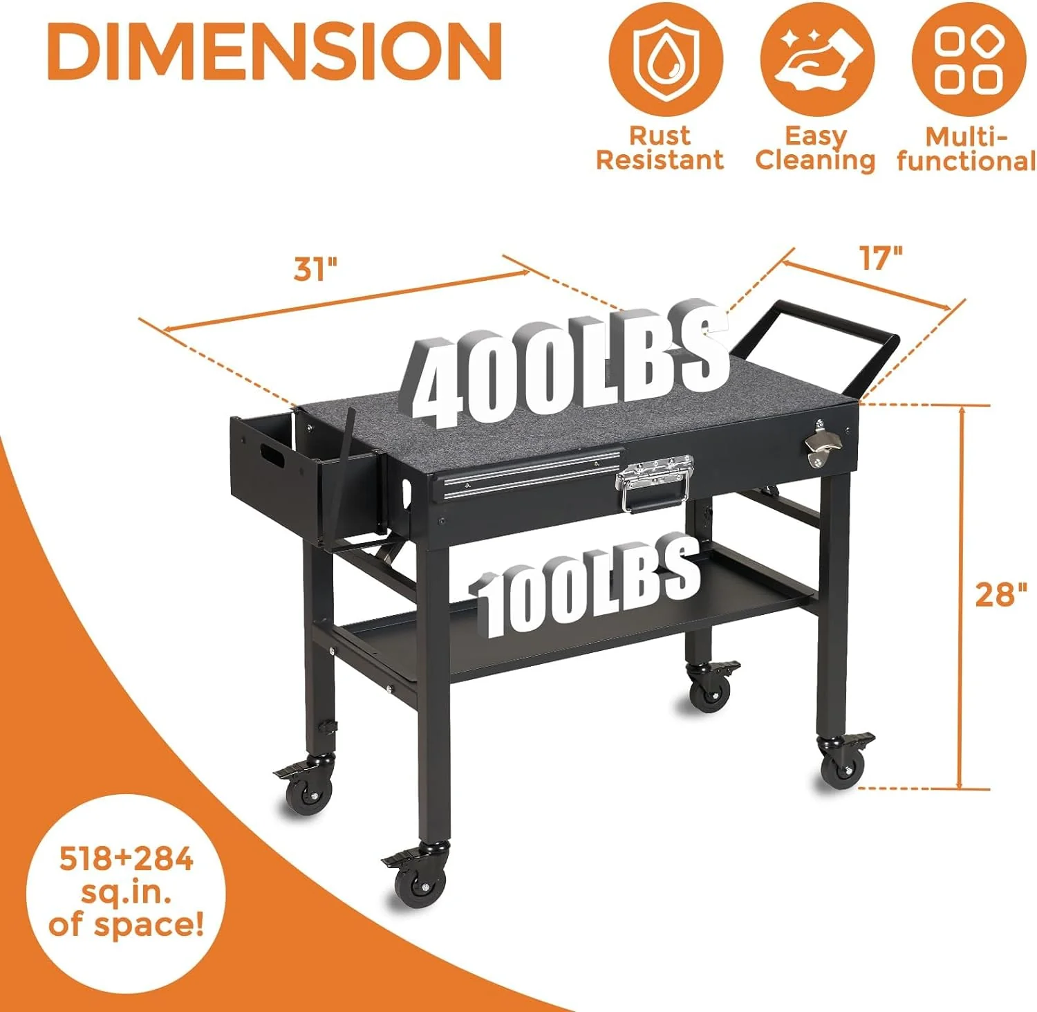 Home / "Portable Stainless Steel Folding Grill Table with Wheels, 31"x 17" Large Space Grill Stand"